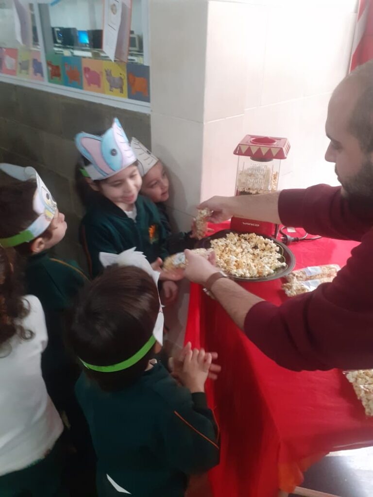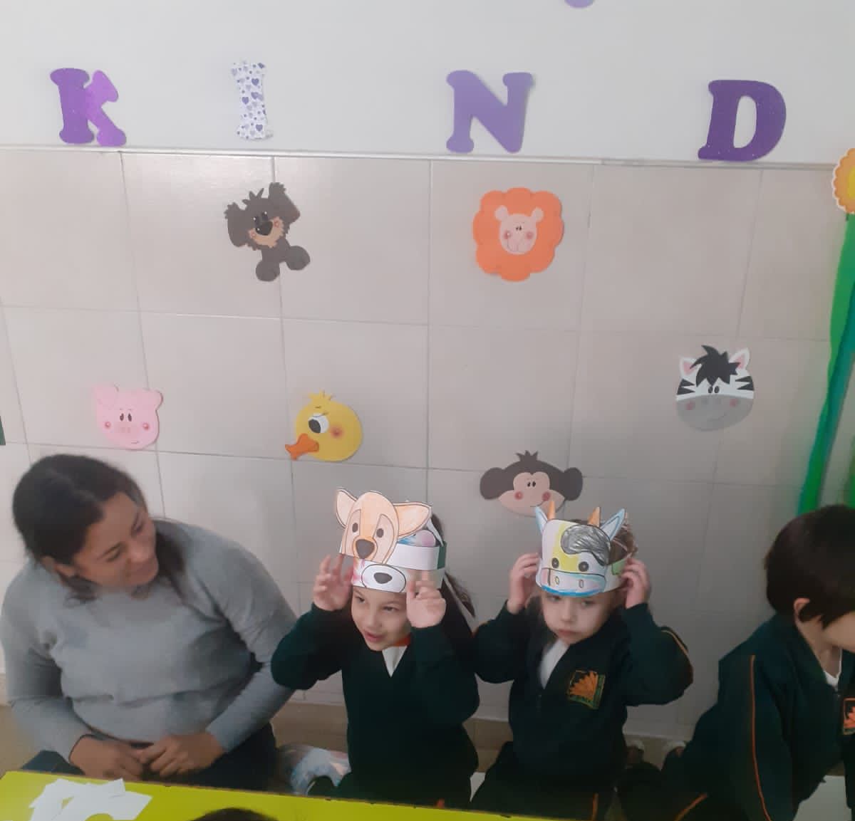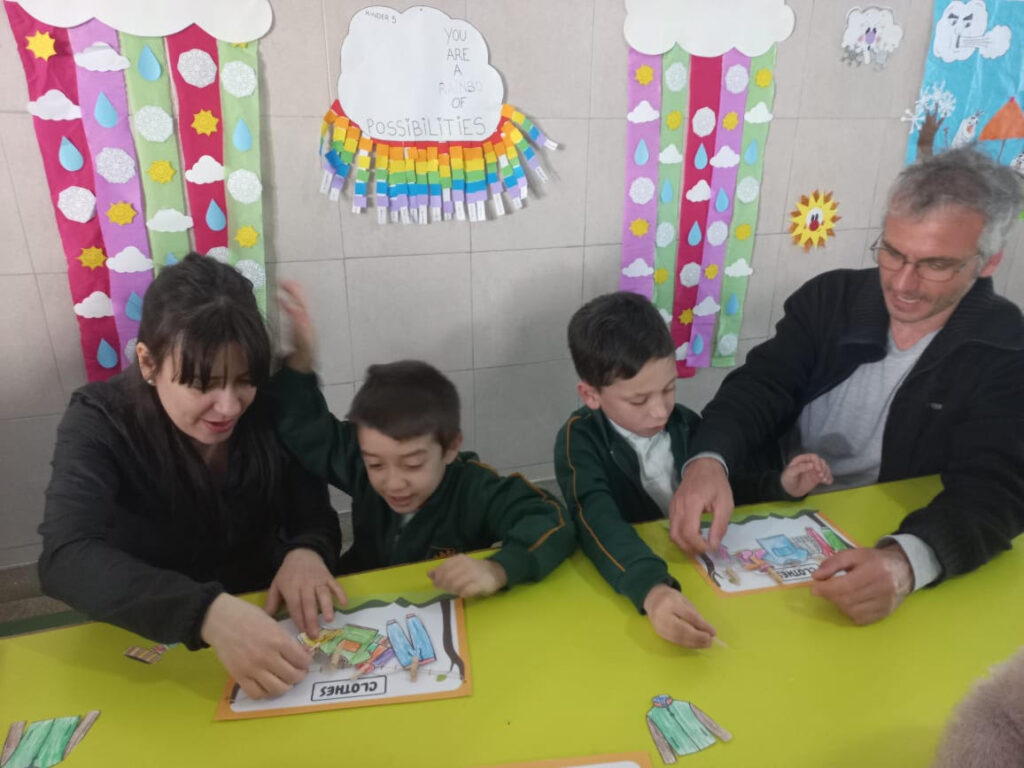 Junto a la profesora Cami y al Profesor Jony pudimos compartir con las familias todo lo que estamos aprendiendo en nuestras clases diarias de inglés… Las canciones de inicio “Hello” y “How´s the weather”, los juegos interactivos con las pantallas, las secuencias con prendas de vestir confeccionadas con los chicos, el desfile de niños y padres según la ropa solicitada. Hubo trabajo con figuras de animales, rompecabezas y vinchas alusivas a la temática. Con los más pequeñitos realizamos un trabajo interactivo sobre el clima: sunny, cloudy, rainy, snowy, windy etc.