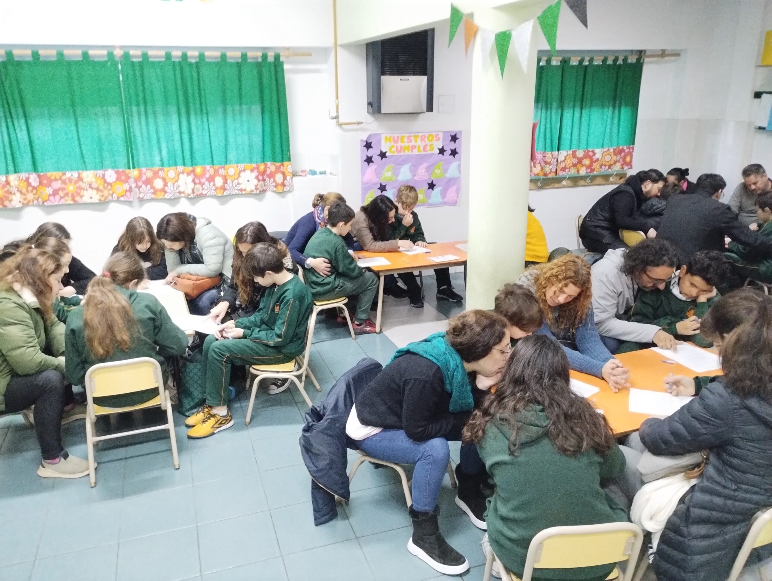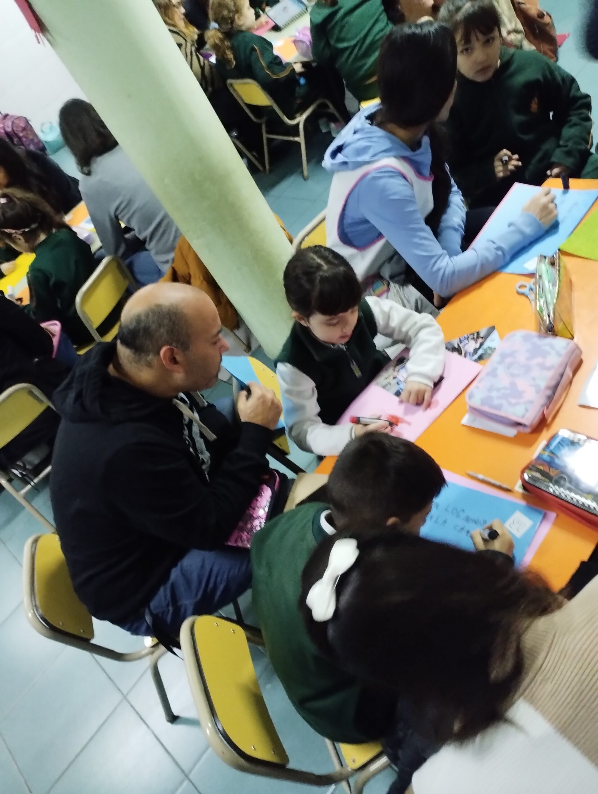 Además, entendiendo que el trabajo cotidiano en las aulas y en estas jornadas no agotan el tratamiento de los contenidos curriculares de ESI, propusimos espacios de intercambio y de reflexión, no sólo con los docentes, con los niños y las niñas, sino también con las familias. Es por eso que las mismas de 1ro y 6to grado nos han acompañado en el desarrollo de Talleres Vivenciales.