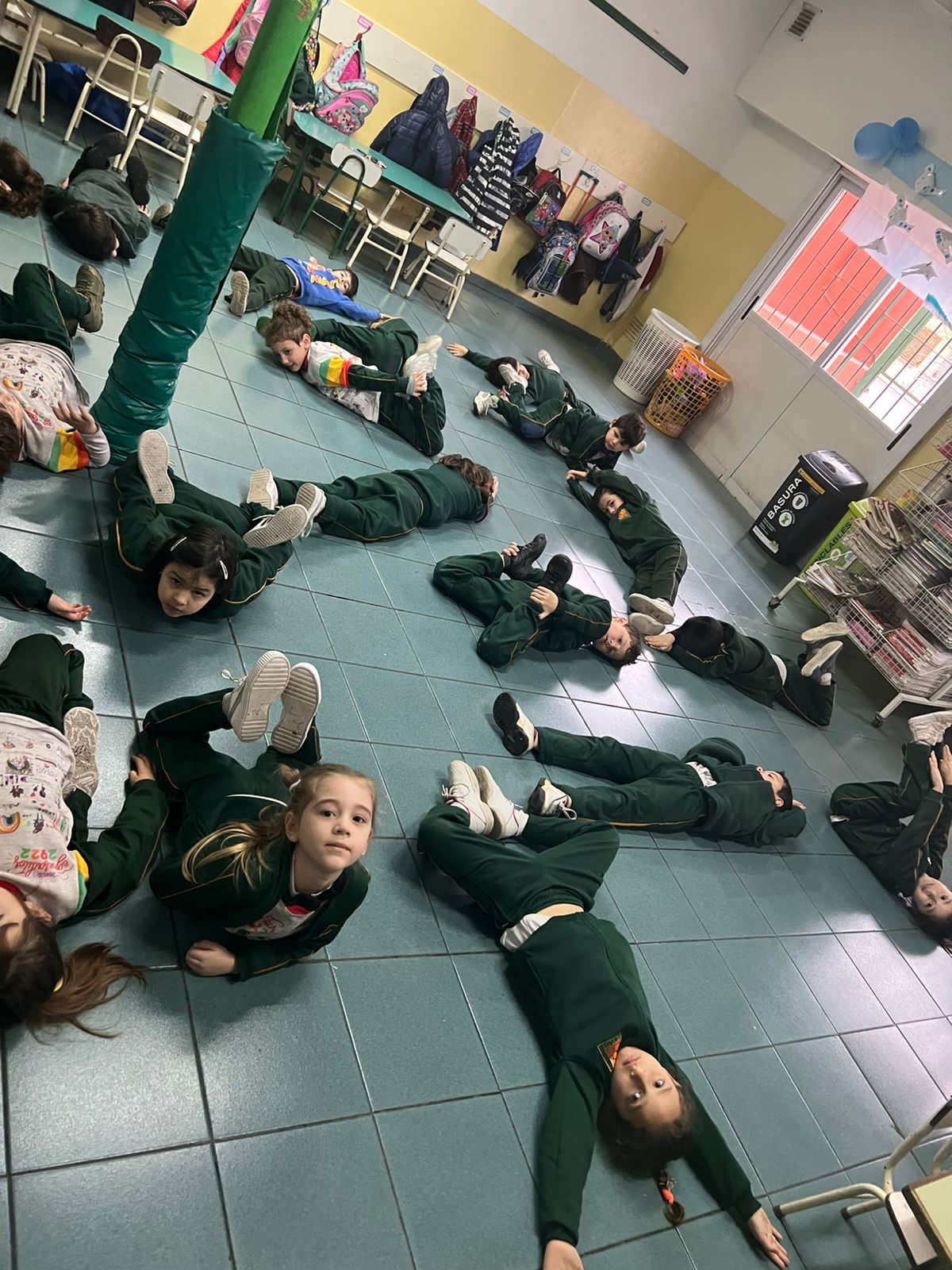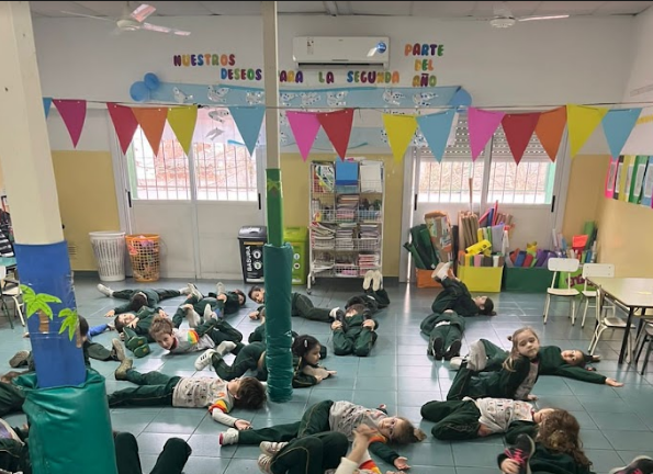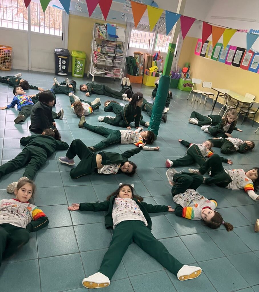 Es por esto que, los/as niños/as de sala de 5 años del turno mañana, realizaron una propuesta en la que convertían su cuerpo en una masa. A través del relato de la docente, ellos/as pudieron registrar su cuerpo, moverse en el espacio, estirarse, encogerse, hacerse bolita, rodar, entre otras acciones. Pudieron además, inventar formas propias y compartirlas con sus compañeros/as.