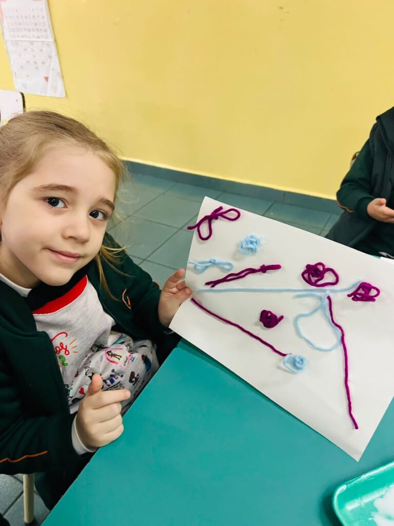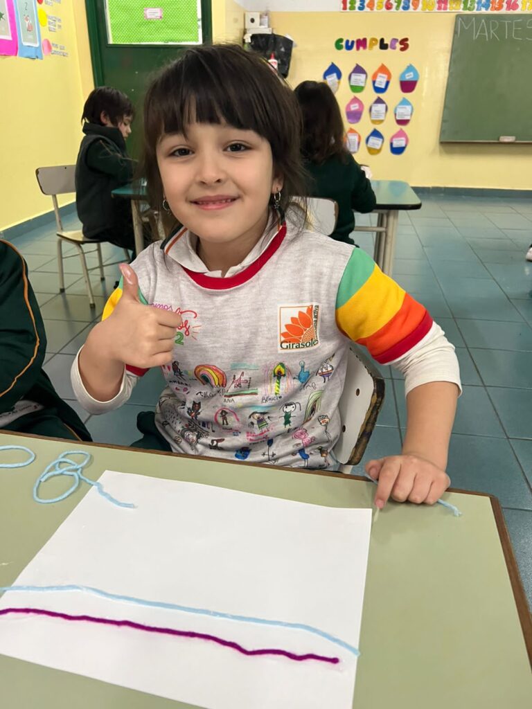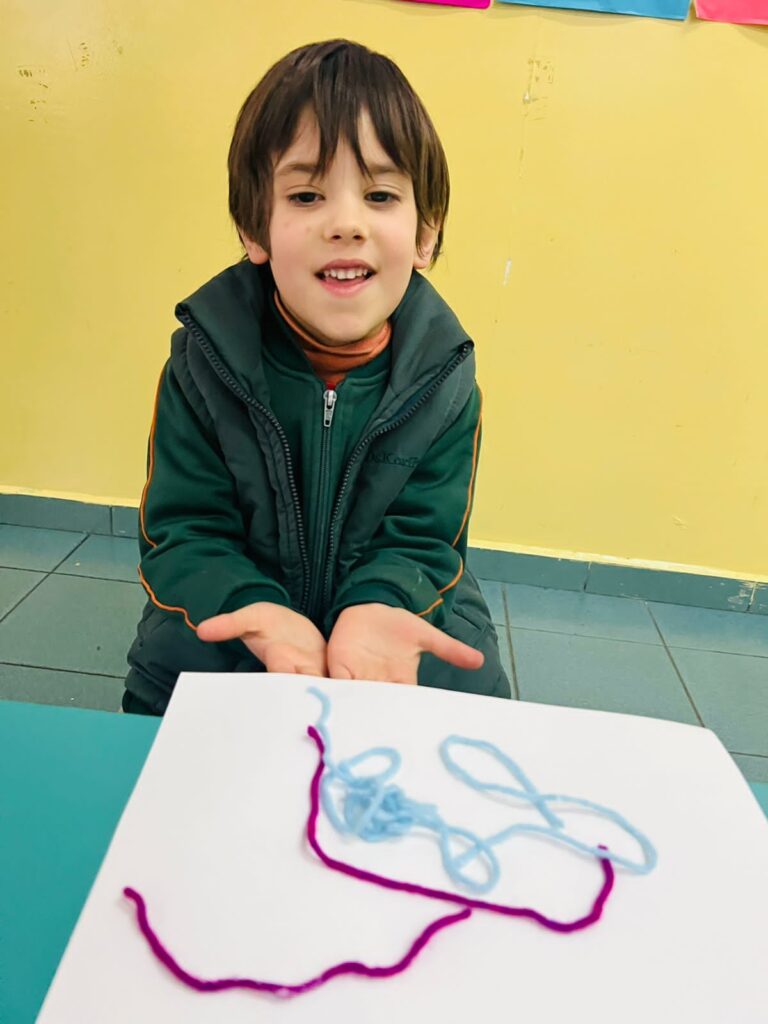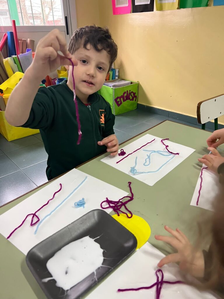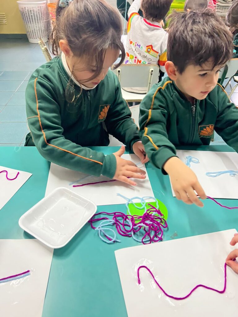 Para finalizar, se llevó a cabo una ronda de intercambio para socializar lo vivenciado, realizando respiraciones profundas y comparando el estado del cuerpo desde el movimiento a la quietud. Por último, los/as niños/as utilizaron lanas de colores para representar en una hoja lo jugado en esta propuesta.