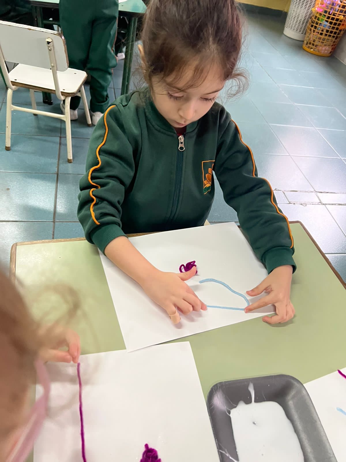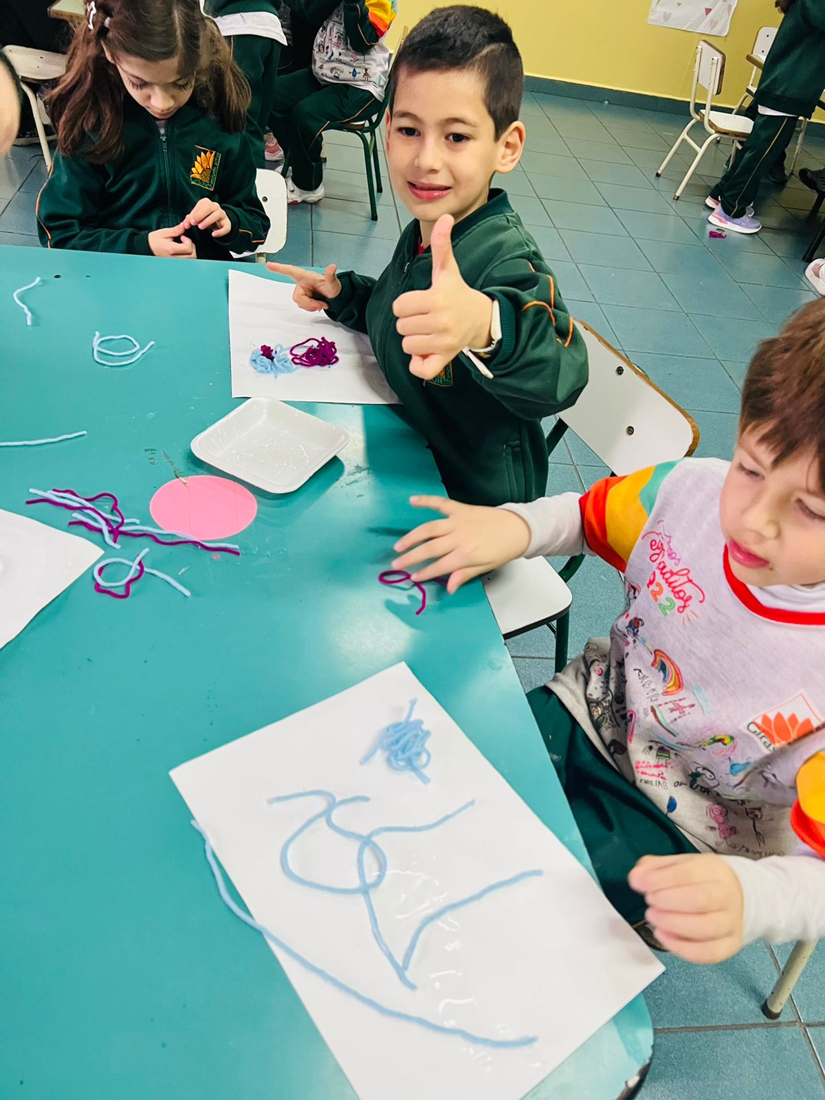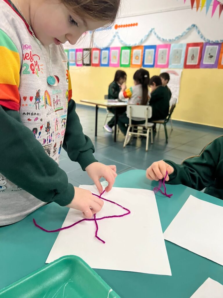 Para finalizar, se llevó a cabo una ronda de intercambio para socializar lo vivenciado, realizando respiraciones profundas y comparando el estado del cuerpo desde el movimiento a la quietud. Por último, los/as niños/as utilizaron lanas de colores para representar en una hoja lo jugado en esta propuesta.