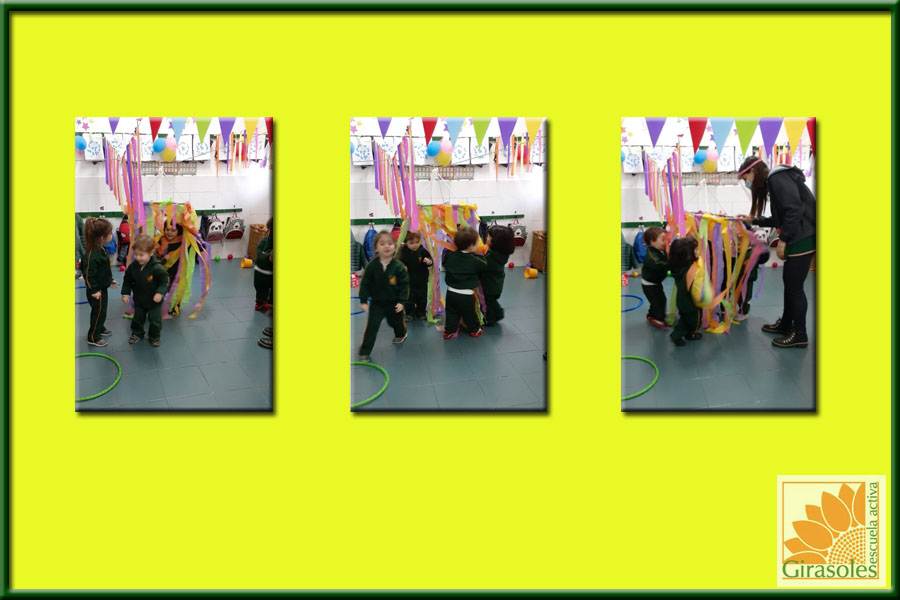 Así, exploran con, por ejemplo, “la búsqueda del tesoro con polenta”; gelatina; espuma y gel de afeitar con varios colores y aromas; técnicas de dáctilo-pintura: con plasticolas y témperas; lluvias de telas: diferentes tamaños, colores y texturas; recipientes con hidrogel; modelado con masa de sal; bolsitas sensoriales con gel, brillantina, y mostacillas. Aros sonoros: con sonidos graves y agudos; pelotas de diferentes densidades; Collage con papelería diversa: celofán, goma eva, cartón microcorrugado, glasé, cartulinas. Técnica con hilos, lanas y plasticolas. Arte sensorial: Jugamos y exploramos con témperas.