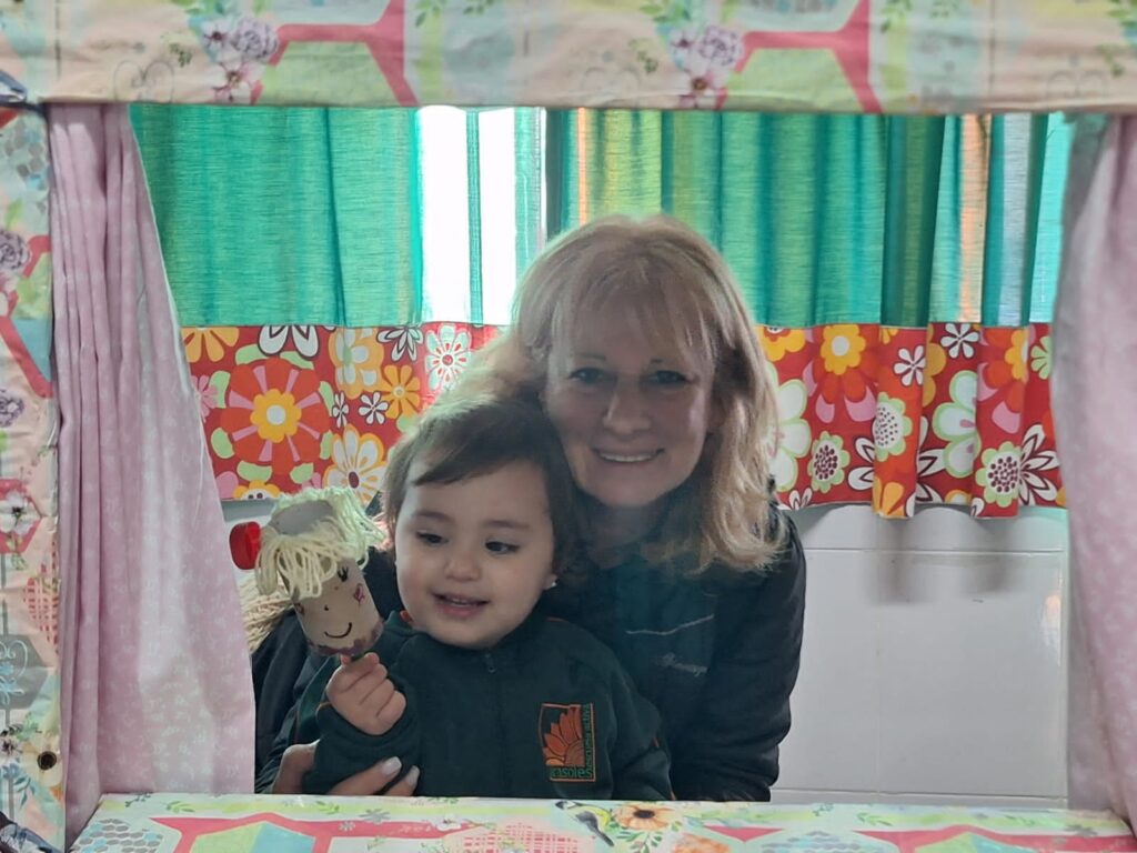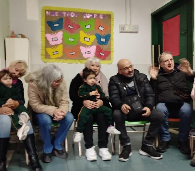 Para disfrutar de este maravilloso encuentro con los abuelos y las abuelas, los más pequeñitos de Girasoles los recibieron junto a las Seños Valeria y Martina y compartieron un hermoso Taller de Títeres y rondas de canciones junto a Meli, nuestra Profesora de música.