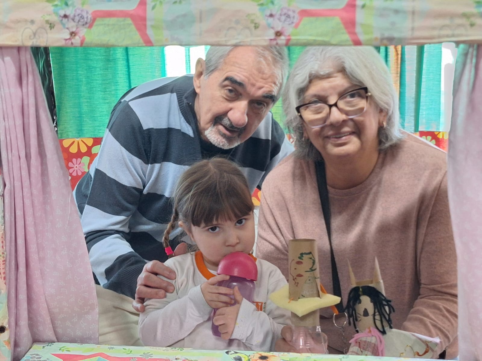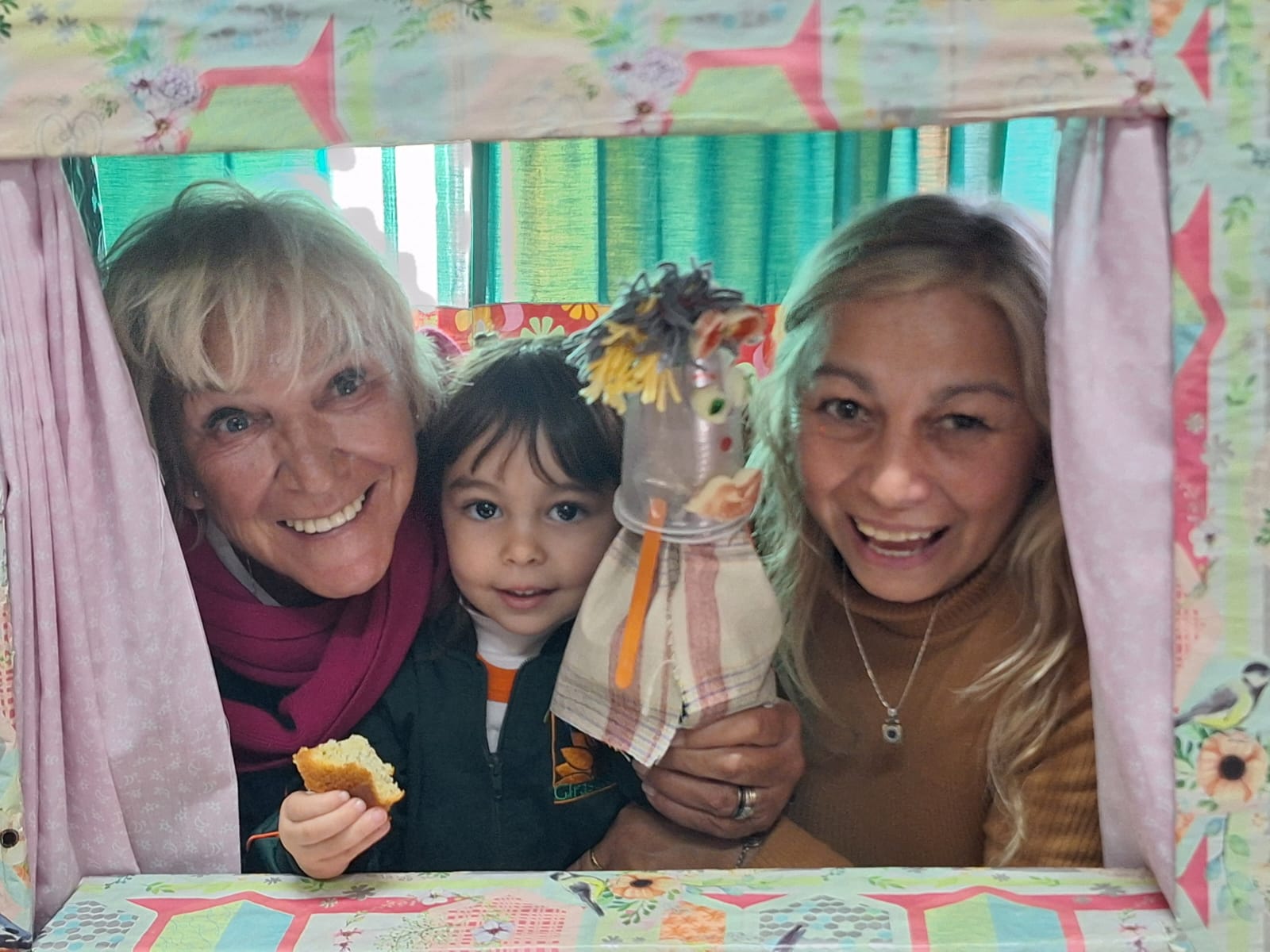 Para disfrutar de este maravilloso encuentro con los abuelos y las abuelas, los más pequeñitos de Girasoles los recibieron junto a las Seños Valeria y Martina y compartieron un hermoso Taller de Títeres y rondas de canciones junto a Meli, nuestra Profesora de música.