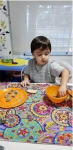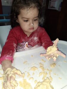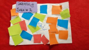“La Salita Arco Iris” junto a sus maestras realizaron diversas propuestas como por ejemplo: actividades grafo-plásticas a partir de la escucha de cuentos, preparar una receta de cocina en simultáneo en encuentros virtuales, exploración de diversas texturas, reconocimiento de animales de la granja, escucha de poesías, bailar y jugar, entre otras.