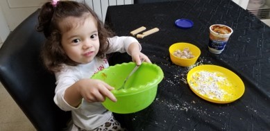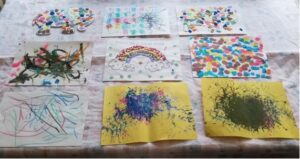 “La Salita Arco Iris” junto a sus maestras realizaron diversas propuestas como por ejemplo: actividades grafo-plásticas a partir de la escucha de cuentos, preparar una receta de cocina en simultáneo en encuentros virtuales, exploración de diversas texturas, reconocimiento de animales de la granja, escucha de poesías, bailar y jugar, entre otras.